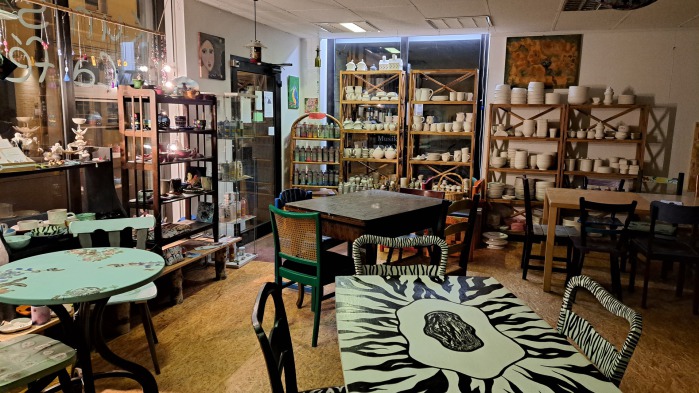 Im Kunstcafe gibt es viele Angebote zur Gestaltung und zum Basteln für Kreative. In unseren neuen Räumen bieten wir jetzt auch Keramik Malen an: Das Keramikmalstudio im Kunstcafe. Hier kann man sich eine Rohkeramik aussuchen und bemalen. Dazu stellen wir alles bereit, was benötigt wird: Pinsel und Farbe, Schablonen und Stempel, Stifte und Vorlagen, Malbücher und viel Platz zum Arbeiten. Falls gewünscht, erklären wir die basics des Keramik Malens, beraten wir Fortgeschrittene, geben Tipps und Tricks, damit eine schöne Schale oder Tasse entsteht.